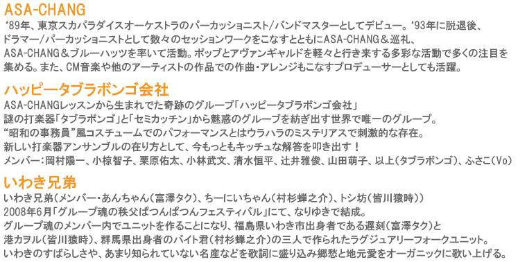 出演:ASA-CHANG+ハッピータブラボンゴ会社 × いわき兄弟